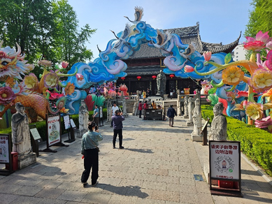 I would be confounded once again later in the afternoon: after a morning at the Sun Yat Sen mausoleum, my host took me to Fuzimiao, the Confucian temple in Nanjing. By now I should have known better, but once again I was shocked to see that the name of the temple is used as a metonym for a plaza filled with shops, an amusement park, a lantern show, and boat rides. A row of people queued up in front of the most famous duck shop to purchase bags of whole roasted ducks to take back home. Across the street were souvenir shops, and my host commented that while the duck shop was selling a local staple food associated with Nanjing’s cuisine, the other shops were a cottage industry offering merchandise that one could find in any tourist attraction throughout China. Wading through this fanfare, I was no longer sure what to expect from the Temple itself.